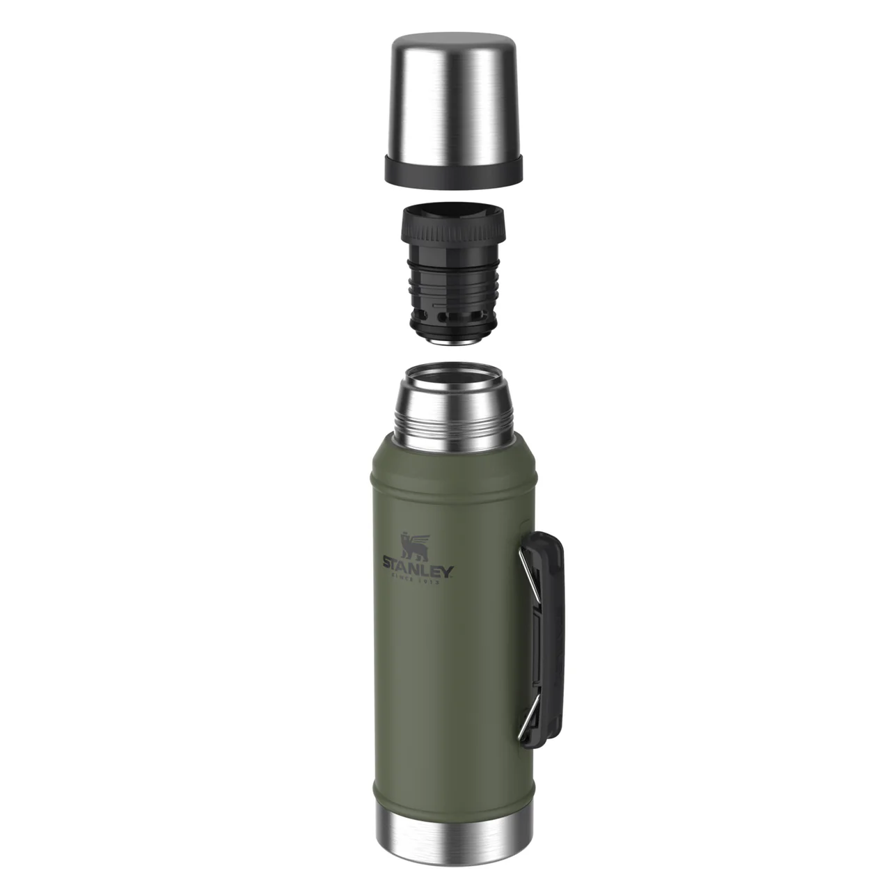 El Termo Stanley Clásico 1L Verde es resistente, práctico y confiable. Mantiene tus bebidas calientes o frías por 24 horas y el hielo hasta 5 días, gracias a su aislamiento al vacío de doble pared. Fabricado en acero inoxidable 18/8, es libre de BPA. Ideal para el día a día, viajes o actividades al aire libre.